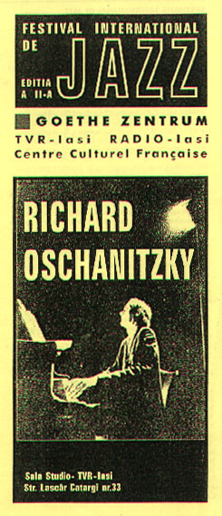 oeuvres vocales - symphoniques, musiques de film Il a fait des enregistrements de jazz et variété en Roumanie et Italie. Nous avons joué ce soir là "Don't be sad ", un thème latin assez sympa... Au cours de notre concert, enregistré pour la TV roumaine, un photographe Adrian Cuba, de l'Agence Focus a réalisé les magnifiques photos qui agrémentent ces pages. A écouter: "Richard Ochanitzky" Entorsa