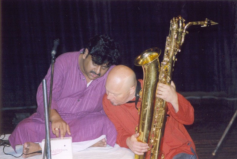 ![]() Partho explique comment marche sa "tampura" electronique. |