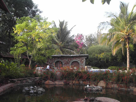 Ce concert dans le jardin est un peu bricolo, mais sympa. Fusion-music autour d'une joueuse de Veena. La route, à travers les villages, pour aller à ce lieu est un festival de couleur et d'odeurs. Vivian a fait la route à l'arrière de la moto d'Eric qui ouvre le chemin et, apparemment ça valait le coup car il en est tout retourné. |