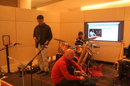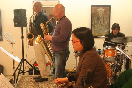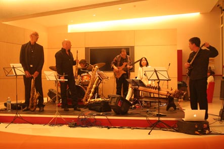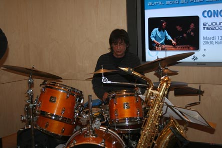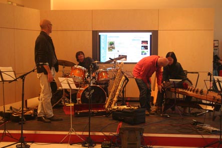14 avril: concert avec Joung Ju, au Centre Culturel Coréen de Paris. Accueillis par l"équipe du Centre pour un concert en 2 parties. D'abord, musique traditionnelle coréenne avec Joung Ju et une conférence sur le Gomoungo par Mee Ra Baudez, puis notre concert. Photos de l'installation et de la balance |
