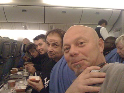 Dans l'avion. "C'est offert, alors, on profite, quoi...! |