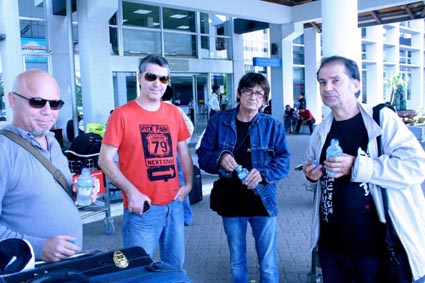 Ils sont bien arrivés27 octobre 2011Au Laos, à Vientiane, ce matin vers 10h30 heure locale (H-5). Long voyage entre Paris et Hanoi: 11h + 1h avant et 1h après. Même si on a l'habitude, on ne s'y fait toujors pas: décallage horaire, repas dans l'avion dans un ordre devenu incohérent. On a l'impression de ne faire que manger, somnoler (dormir est impossible) regarder des films pas vraiment décoiffants et sortir de l'avion cassés pour la fin de la journée. Escale à Hanoi. Notre Vietnam bien aimé est sous des trombes d'eau. Arrivée à Vientiane sous un soleil resplendissant, la moiteur de l'air nous saisit. L'Asie, l'asie... et ses odeurs bizarres, reconnaissables à l'instant où le pied se pose sur le tarmac...! Les visages sont ouverts, les filles sont belles. Le bonheur d'être là avec ce que nous aimons faire: musique, les amis. Certains manquent, mais c'est leur choix.... Eliza est arrivée la veille, depuis le Vietnam, via le Cambodge. Elle vient nous chercher. Retrouvailles. L'hotel est en ville, quartier qui nous rappelle à la fois l'Inde et le Nigeria (et bien sûr le Vietnam). La patronne laotienne parle français, est adorable. Bon, le wifi est là mais il traine sacrément des pieds. Nous rencontrons dans l'après midi les 2 musiciens laotiens avec qui nous serons en résidence toute la semaine: Khampeng, qui joue ce xylo en bambou qu'on connait déjà et d'un genre de cymbalum et Khamsouane, qui joue du khen, l'orgue à bouche traditionnel et de la flute en bambou. Mise en place du planning; déjà quelques problèmes de salles...Tirage des partitions, je fais un petit point avec les 2 laotiens autour des morceaux choisis. On commence à travailler dimanche. Nous nous sommes déjà un peu baladés dans le quartier, pour aller, à pied, de l'hotel à l'Institut français, ou manger en ville. C'est toujours sidérant quand on arrive à se nourrir copieusement pour un total de 8 € à 5. Ce sont vraiment des pays encore abordables pour nos futures absences de retraite à venir. Demain, journée off, invités à déjeuner sur le Mékong chez l'attaché culturel qui nous a invité ici. Y a pire comme emploi du temps. Parasites sociaux, je vous dit... |