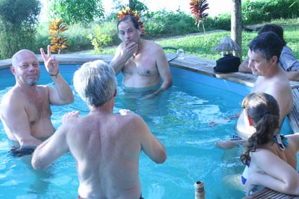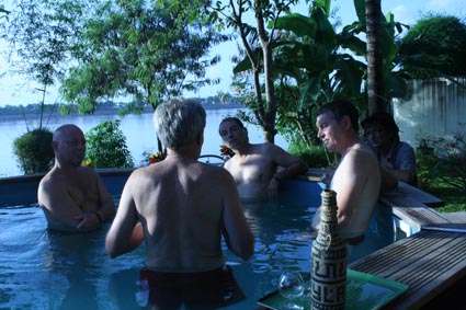 La maison au bord du Mekong Vu de la berge Instants piscine. Discussions métaphysiques en milieu non hostile Le coucher de soleil, carte postale hélas, mais en vrai, tu meurs. Fin du jour sur le Mekong |