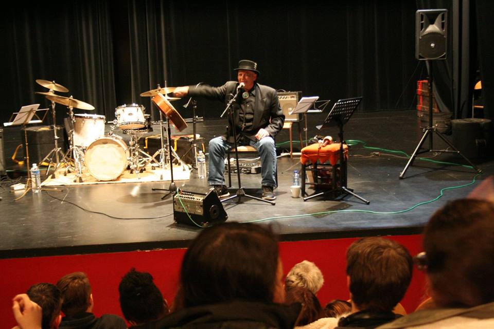 Conférence de Grayhawk pour les élèves anglophones de terminale, suivie d'un concert Thirteen Moons, dans la splendide salle de spectacle du lycée de Pézenas.