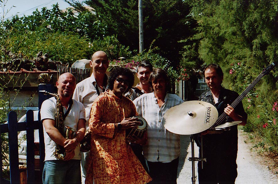 | Juillet 2007: Rencontre avec GOPAL DAS De gauche à droite: Chris Azéma, Pierre Diaz, Gopal Das, Jean Marie Frédéric, Vivian Pérès, Emmanuel de Gouvello. A l'initiative d'Eliza, nous avons eu le plaisir d'accueillir dans notre région le jeune et talentueux Gopal Das. Gopal est de passage en France pour tout l'été. Il est venu à la demande de la sitariste Brigitte Menon pour travailler en duo avec elle. Gopal animera aussi une Masterclass sur la musique indienne du nord le lendemain à, l'école de musique de Balaruc, à l'initiative de Jean Marie Frédéric, le roi du Ti Hai et du chausson aux moules. Gopal repassera nous voir en Septembre, après un séjour de plusieurs semaines à Lyon où il va rejoindre son guru Shankar Ghosh et l'aider à animer un stage. Merci à Eliza qui s'est véritablement défonçée la caisse pour organiser la venue et le séjour de Gopal. |